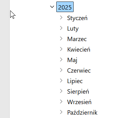 Zakładanie miesiąca przeprowadza się poprzez kliknięcie "Dodaj" po wskazaniu roku obrotowego.