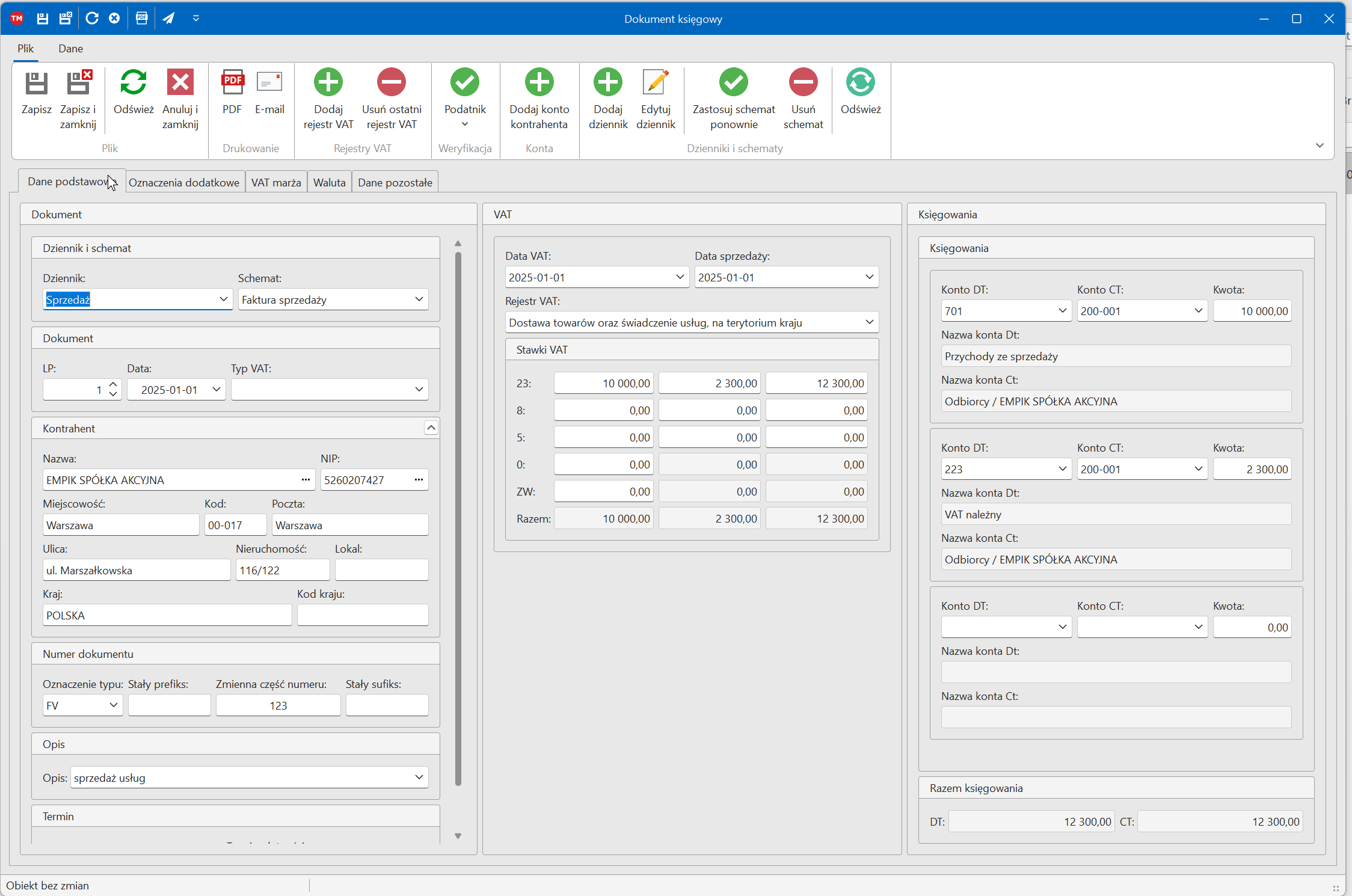 Dla przykładowego dziennika sprzedaży usług księgowanie wygląda następująco: