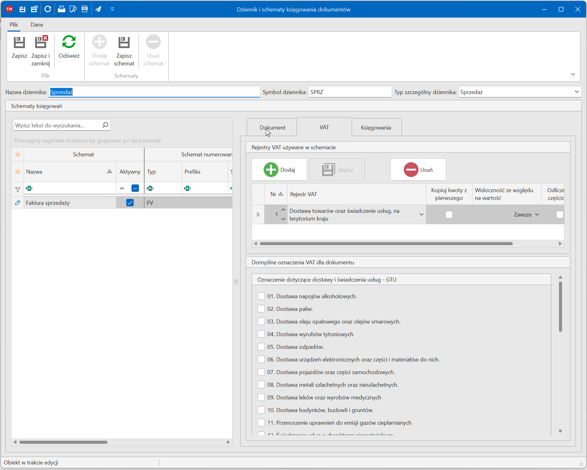 Dla takich schematów w księgowaniach stosujemy predefiniowane wartości pochodzące z rejestrów VAT: