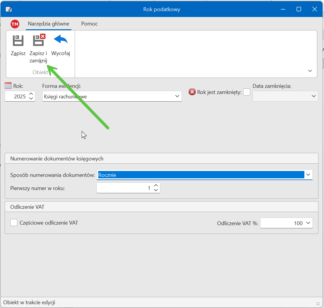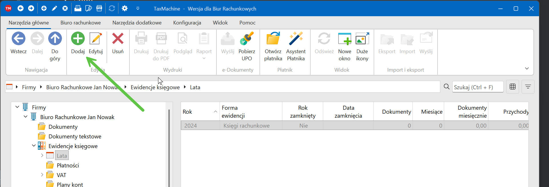 Księgi rachunkowe Zakładanie roku obrotowego Zakładanie nowego roku księgowego wykonuje się poprzez kliknięcie dodaj na węźle "lata": Następnie w oknie edycji roku należy wybrać formę ewidencji "Księgi rachunkowe" i kliknąć "Zapisz".