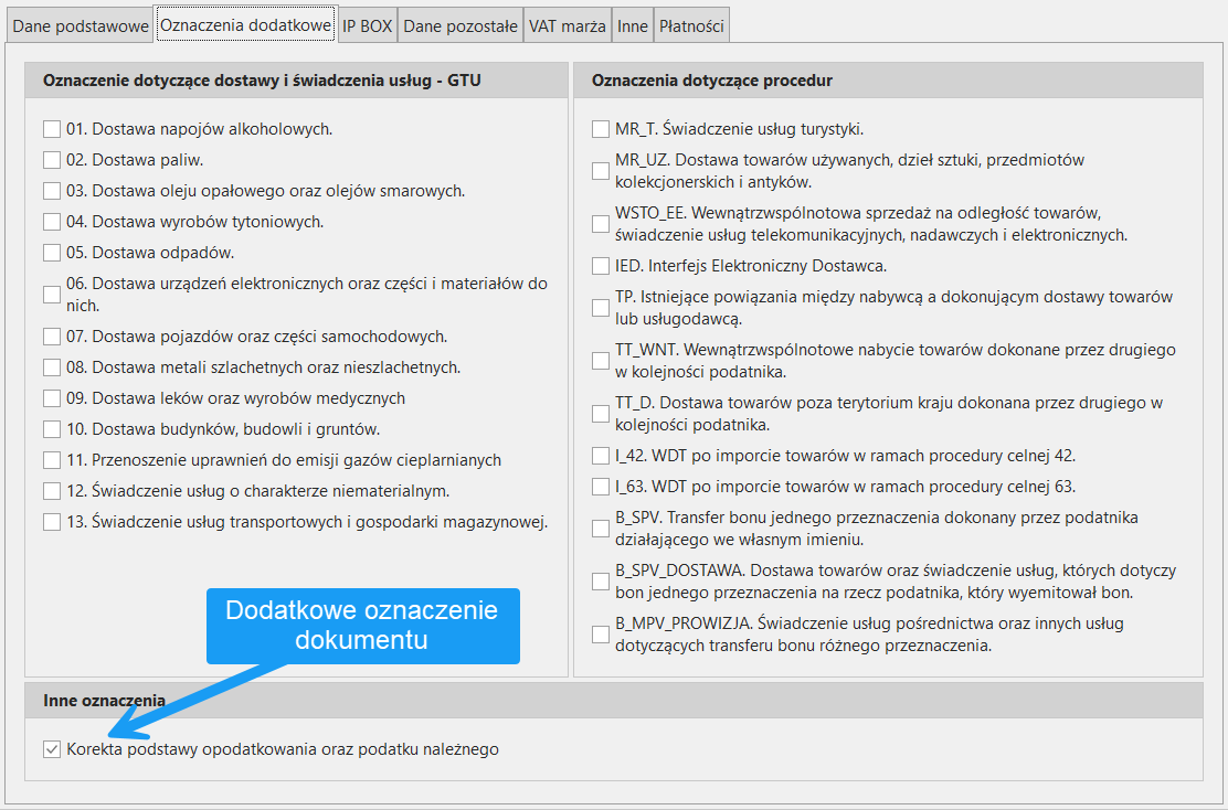 Pamiętajmy o właściwym oznaczeniu dokumentu, mogą obowiązywać dodatkowo inne oznaczenia jak w pierwotnym księgowaniu:
