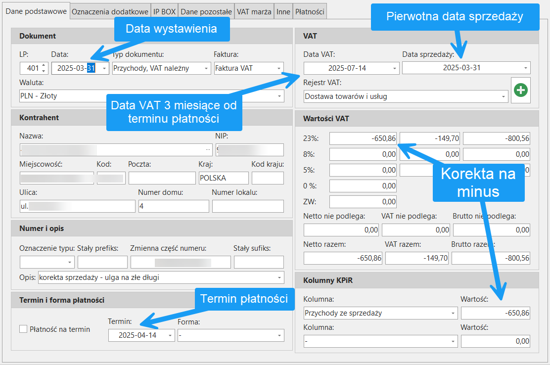 Ulga na złe długi - korekta VAT należnego u wierzyciela